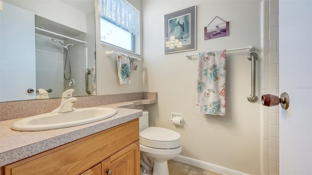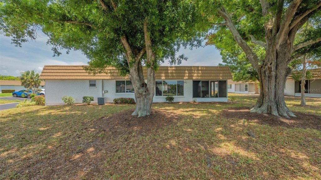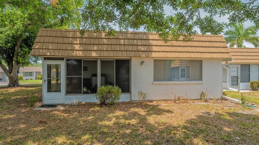 One of a kind! Unique large side yard with big window, giving partial water views and fabulous sunsets. Sit on the dock across the street and watch the sunsets on the creek. This is the one you’ve been waiting for, this very open concept floor plan. Fantastic light and bright 2BR/2BA end unit with water views of Phillippi Creek. Updated, kitchen offers wood cabinets, Formica counter tops, pantry closet with pull outs, a desk, and is open to the dining/living room. Electric fireplace in living room is wonderful and easy to operate. You will enjoy the view and privacy from the tiled lanai with vinyl sliders and hurricane shutters. Walk across the street down the path to a dock which is great for fishing, sunsets & bird watching. Some windows have been replaced. Ceramic tile throughout, replumbed, A/C replaced in 2025, electrical box replaced in 2019, roof was done in 2023, washer & dryer located in air-conditioned laundry room. Safe & quiet 55+ active community offers clubhouse with heated pool, card/game room, fitness room, library & on-site manager. Boat docks are available first come first served for $1,344 per year. 2 pets allowed, maximum height of 15” at shoulder. Convenient to shopping, banking, restaurants and only 2 Miles to Siesta Key beaches. Shelving in Family room doesn’t convey.
